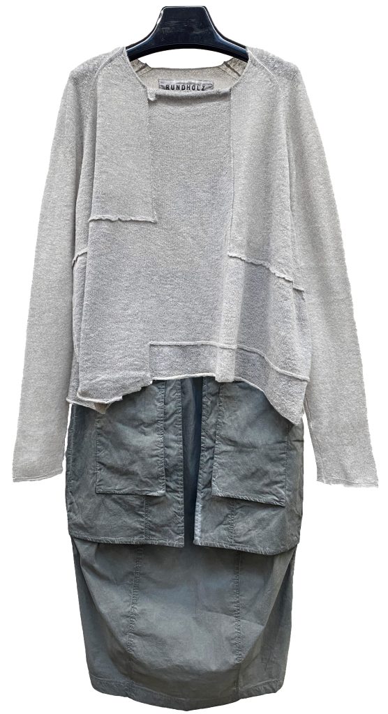 1 – Elemente Clemente Boiled Wool Pocketed Jacket.2 – Rundholz Dip lightweight boxy pullover, paired with Elemente Clemente baby corduroy tapered pant.3 – Moyuru wool button down cowl top and long sleeve dress ensemble.4 – Moyuru long sleeve asymmetric panel dress. Necklace by Christina Brampti.5 – Two toned zippered pocket top with hidden pattern, styled with Plu denim tutu skirt.6 – Rundholz Black Label sleeveless pleated button dress, styled over black long sleeve top.7 – One size pocketed pullover, styled with Mama B cozy knit wide leg pant. Necklace by Samuel Coraux.8 – Elemente Clemente wool top layered over long sleeve Motion mesh tee and PLU balloon pant.9 – Moyuru cuffed long sleeve abstract graphic dress.10 – Rundholz Dip lightweight boxy pullover, styled with Rundholz pocketed cargo pencil skirt.11 – Rundholz Black Label boiled wool cardigan.12 – Polkadot mock neck pullover, over Rundholz Black Label drop rise wide leg pant.13 – Elemente Clemente long boiled wool blazer.