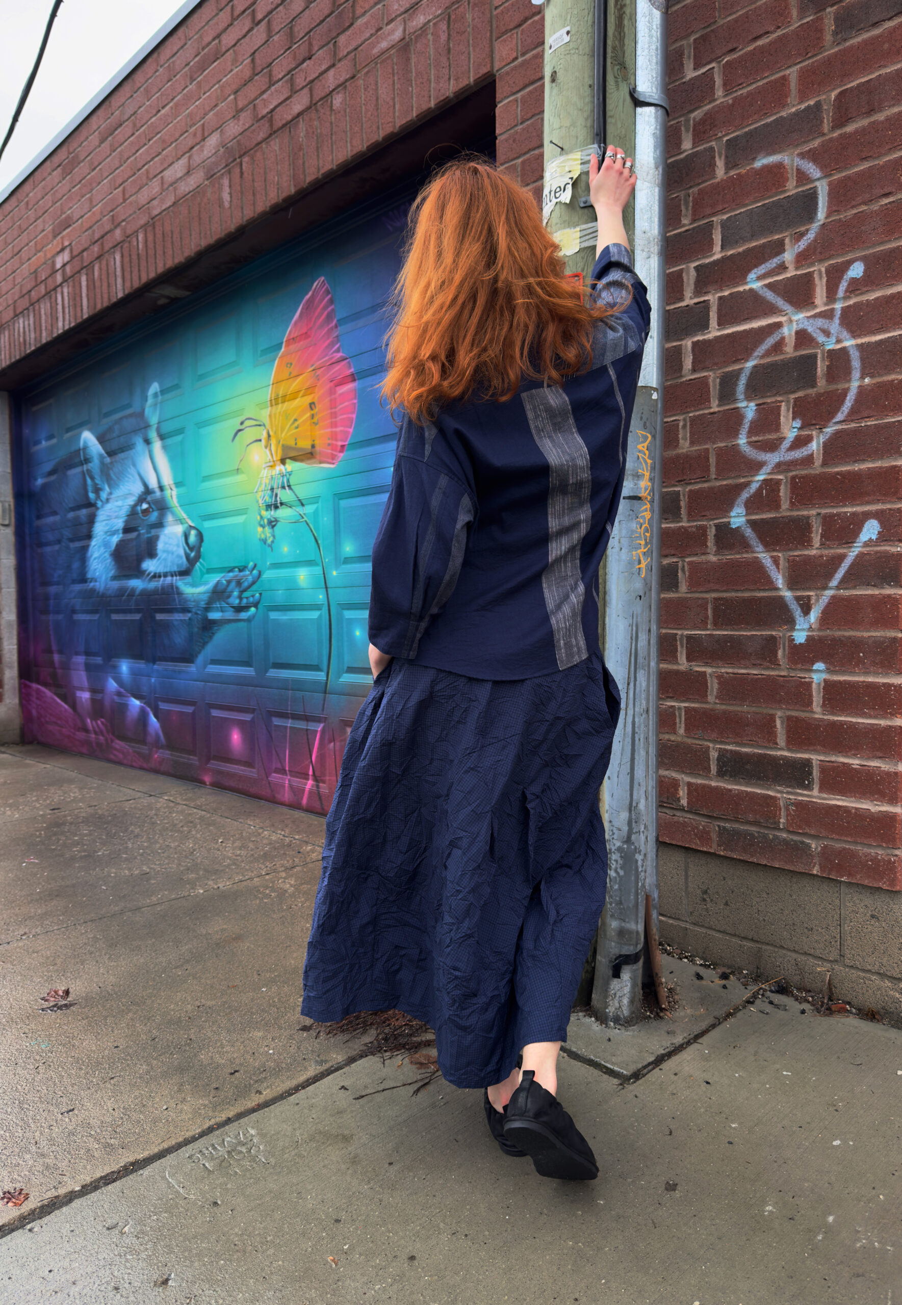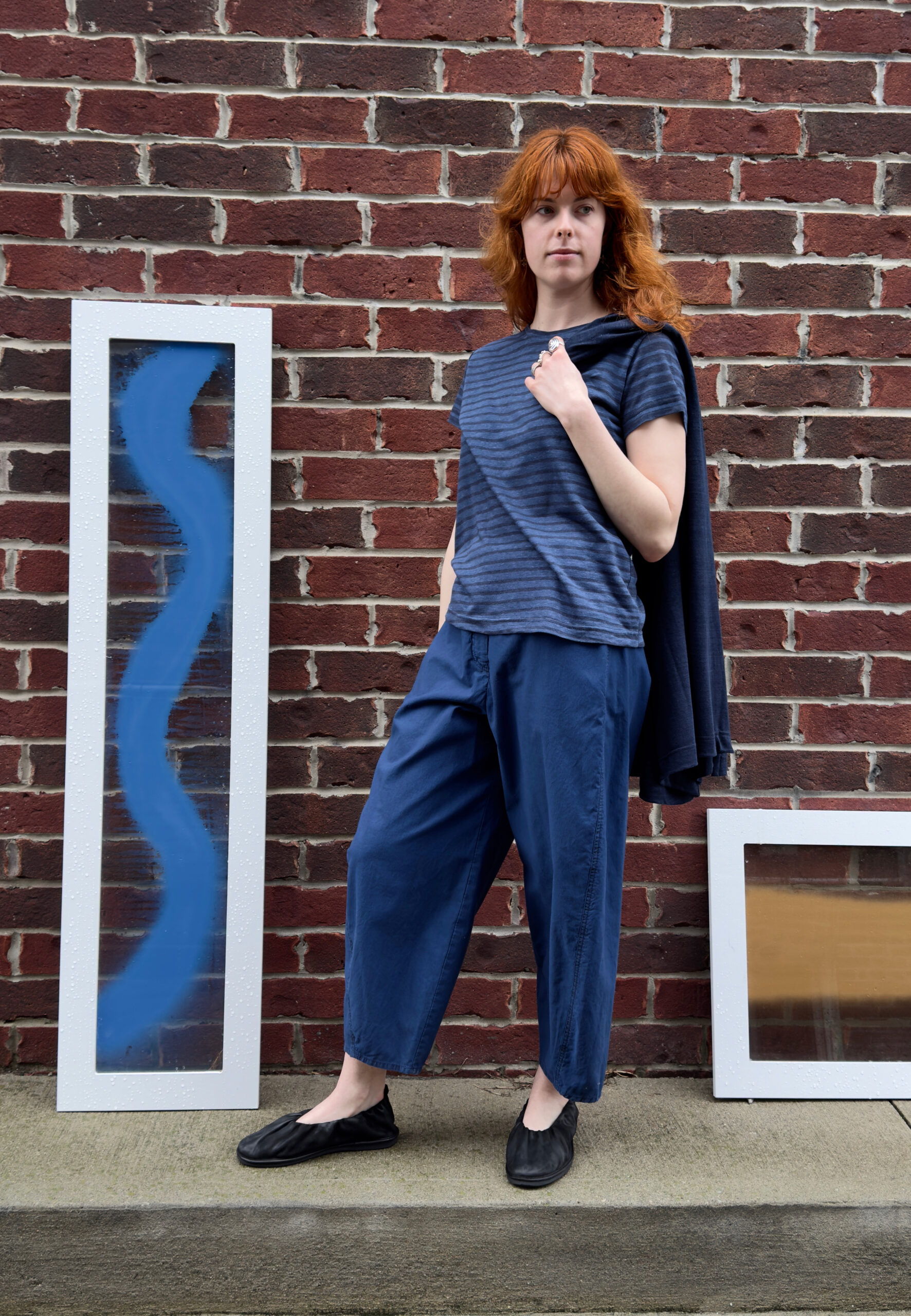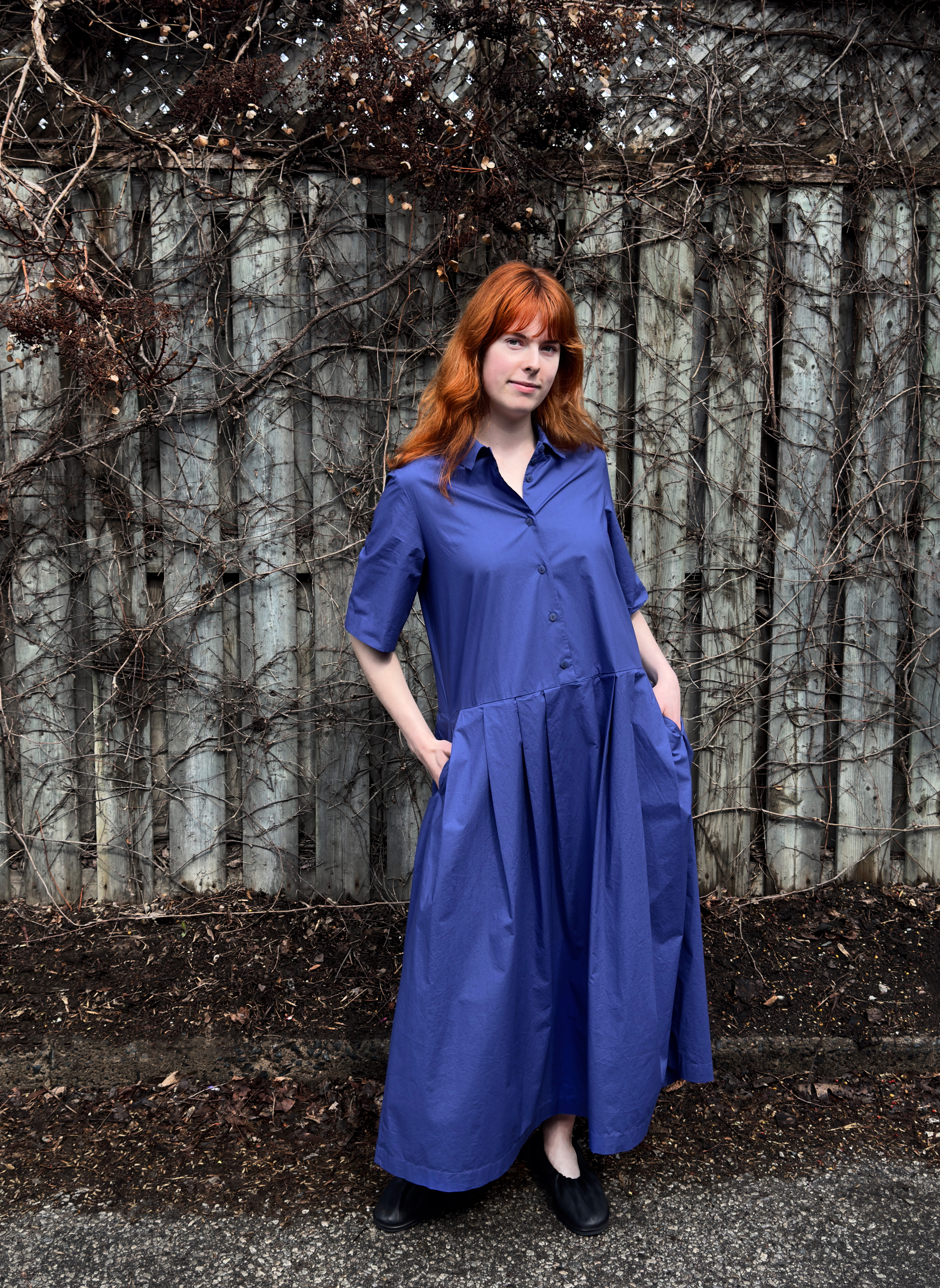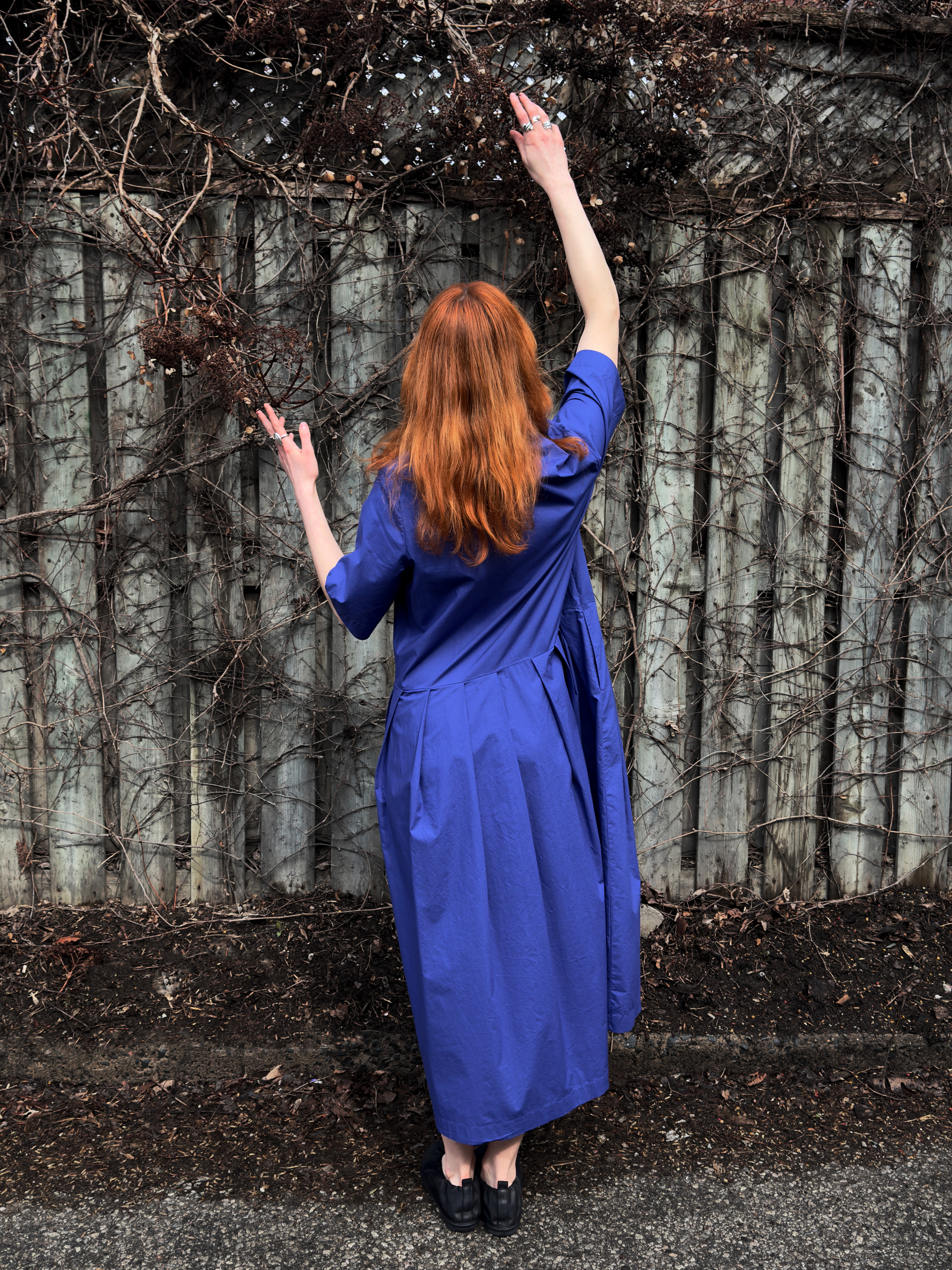 1 – Neirami pleated cotton midi dress.2 – Full front view of above.3 – Pleating & pocket detail view of above.4 – Back view of above.5 – Tamaki Niime mandarin collar cotton shirt, paired with Mama B crinkled check-pattern skirt.6 – 3/4 view of above.7 – Back view of above.8 – Motion one-size double seam top, styled with Tamaki Niime drop-rise denim pant and crumple bag. Small scarf worn in hair by Tamaki Niime.9 – Posed view of above.11 – Full front view of above.12 – Back view of above. P.s. Try styling your small Tamaki Niime scarves in your hair!13 – A cohesive monochrome blue look from Oska, featuring their long ribbed knit pullover, and ankle length pant. Necklace by Samuel Coraux.14 – Front view of above.15 – Back view of above.16 – Mama B linen blend cardigan, layered over Mama B stripped linen blend tee, and Oska cropped barrel leg pant. Bracelet by Samuel Coraux.17 – View of above without cardigan.18 – Mama B matching jacket and pull on pant in a crinkled check fabric.19 – Mama b linen bled dual stripe cardigan, layered over Mama B cocoon cotton jersey knit dress.