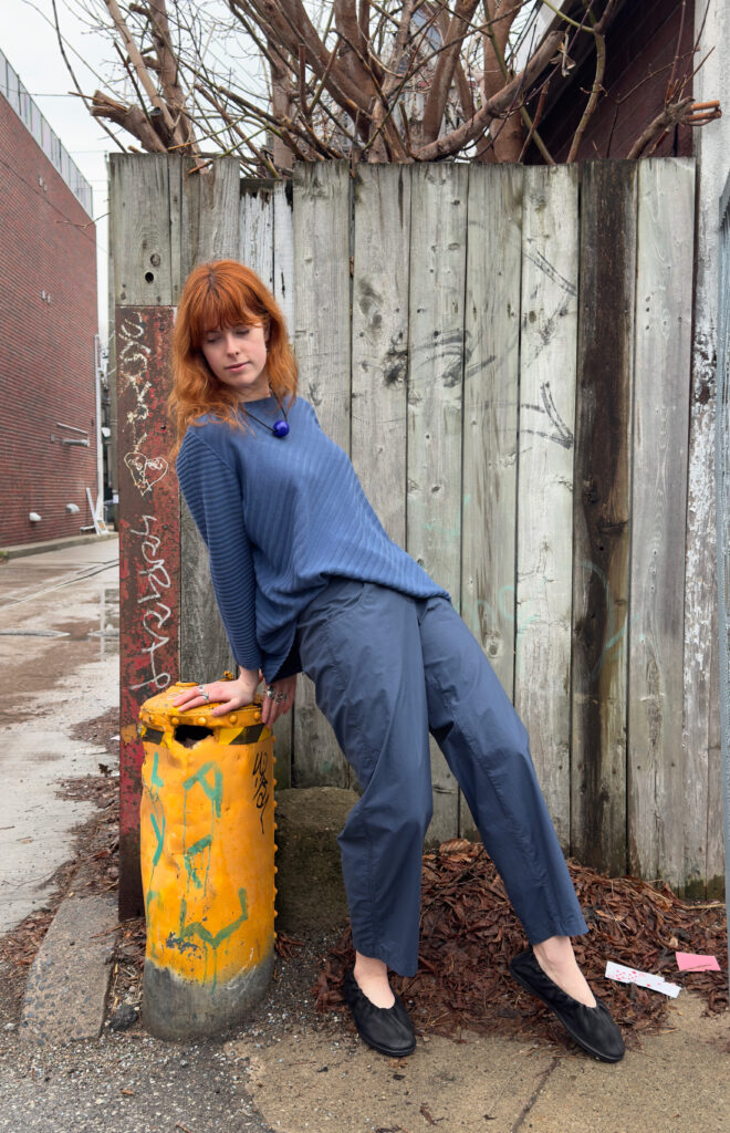 1 – Elemente Clemente Boiled Wool Pocketed Jacket.2 – Rundholz Dip lightweight boxy pullover, paired with Elemente Clemente baby corduroy tapered pant.3 – Moyuru wool button down cowl top and long sleeve dress ensemble.4 – Moyuru long sleeve asymmetric panel dress. Necklace by Christina Brampti.5 – Two toned zippered pocket top with hidden pattern, styled with Plu denim tutu skirt.6 – Rundholz Black Label sleeveless pleated button dress, styled over black long sleeve top.7 – One size pocketed pullover, styled with Mama B cozy knit wide leg pant. Necklace by Samuel Coraux.8 – Elemente Clemente wool top layered over long sleeve Motion mesh tee and PLU balloon pant.9 – Moyuru cuffed long sleeve abstract graphic dress.10 – Rundholz Dip lightweight boxy pullover, styled with Rundholz pocketed cargo pencil skirt.11 – Rundholz Black Label boiled wool cardigan.12 – Polkadot mock neck pullover, over Rundholz Black Label drop rise wide leg pant.13 – Elemente Clemente long boiled wool blazer.