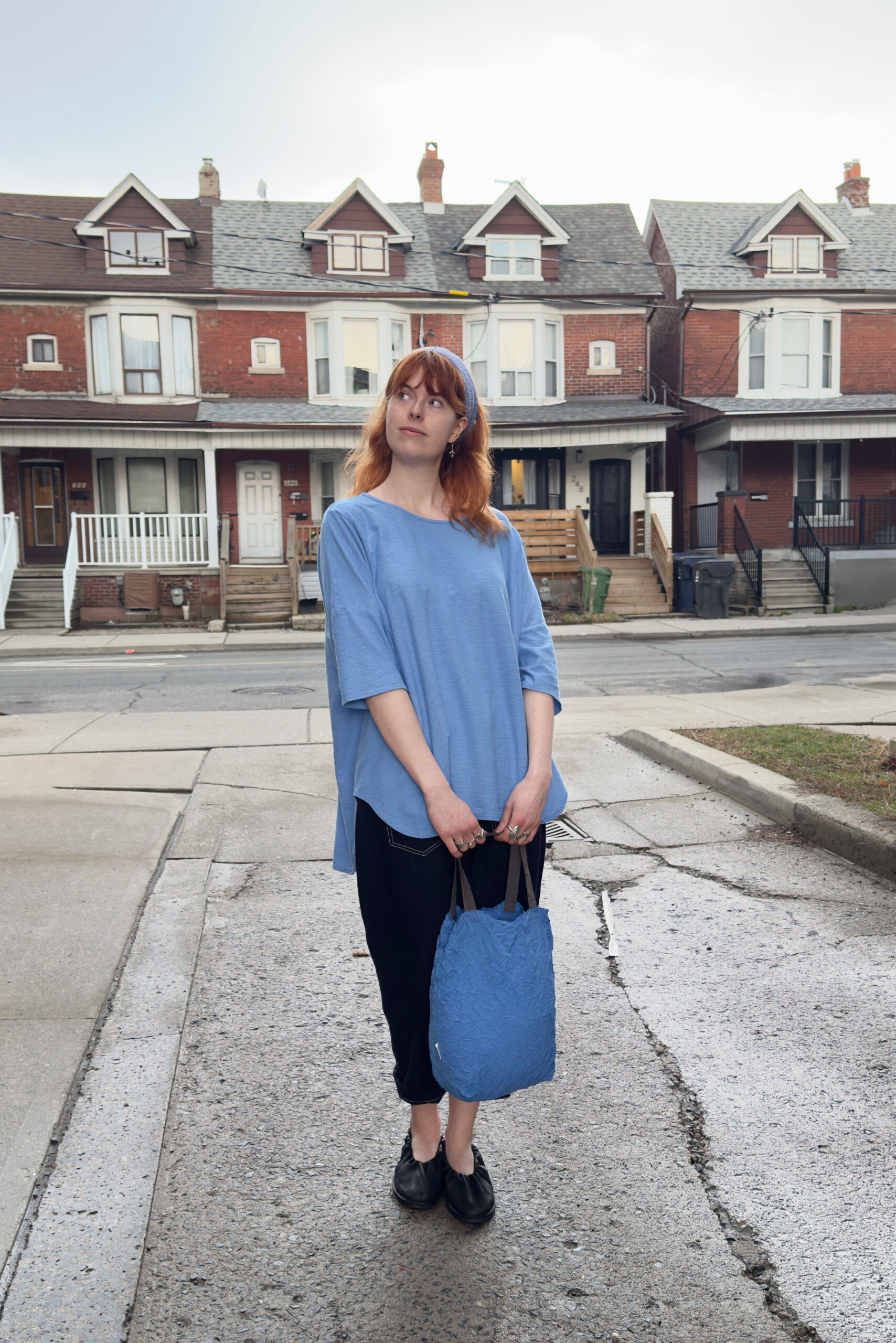 14 – Outfit from above without jacket. A-line tee also available in black.15 – Back view of above.