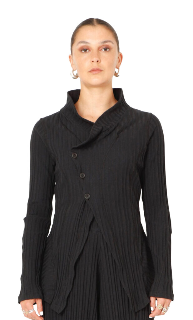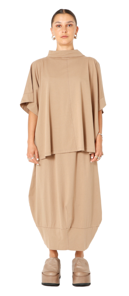1 – Sort Aarhus relaxed asymmetric wide rib pullover (also available in creme), paired with matching Sort Aarhus cropped wide rib pant.2 – Back view of above.3 – Sort Aarhus relaxed wide rib pullover styled with matching Sort Aarhus cropped wide rib pant.4 – Sort Aarhus relaxed boxy one button cardigan, layered over Sort Aarhus French Terry cap sleeve dress.5 – Sort Aarhus relaxed viscose hi-low top, styled over long sleeve tee and Mama B pull on jersey pant. Necklace by Christina Brampti.6 – Sort Aarhus relaxed textured asymmetric top with, accompanied by Sort Aarhus drop rise French Terry pant.7 – Sort Aarhus relaxed wide rib pullover in creme, paired with Mama B pull on jersey pant.8 – Elli waxed A-line jacket Layered over Mama B 3/4 sleeve tee and Elemente Clemente tapered pant.9 – Sort Aarhus relaxed boxy top, paired with Sort Aarhus drop rise French Terry pant and Christina Brampti necklace.